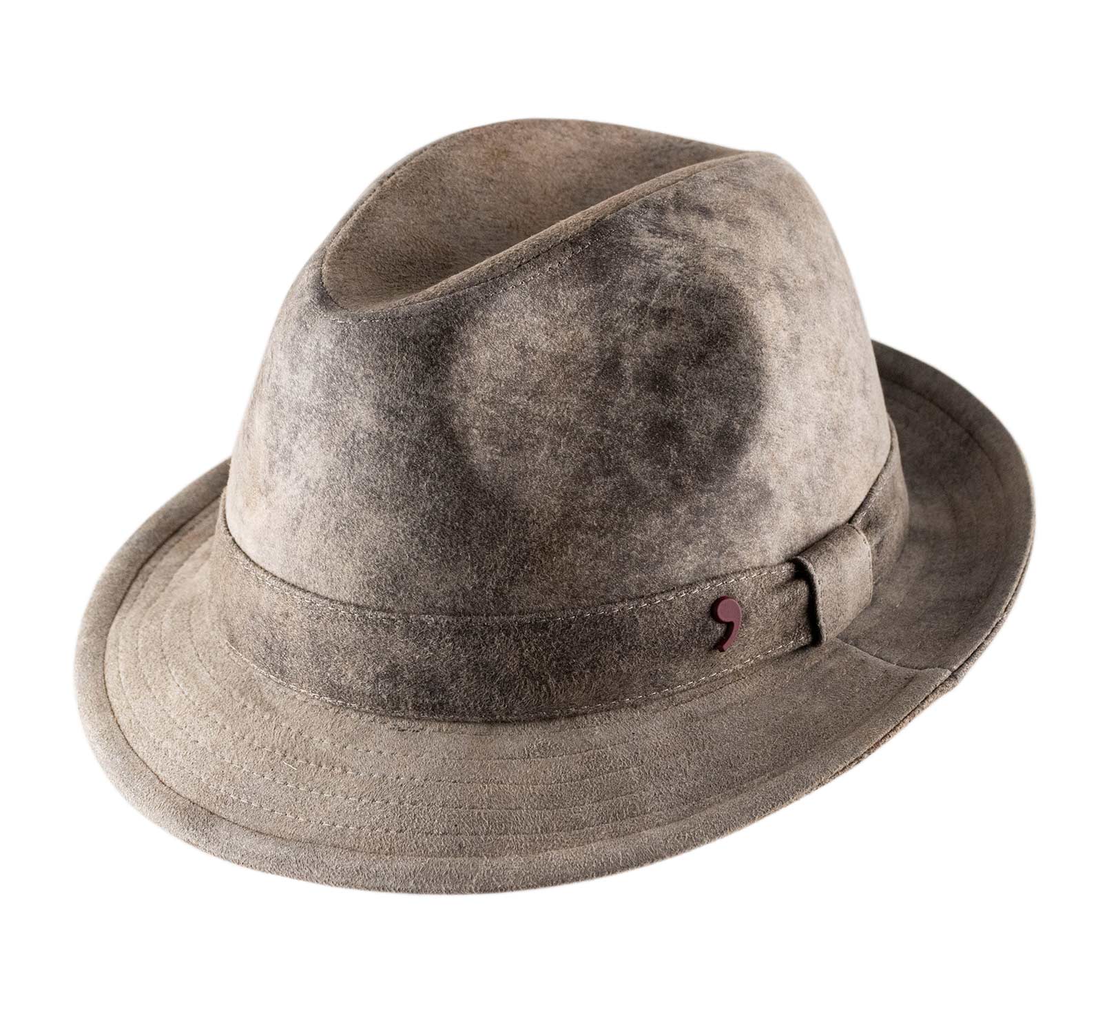 Assertive style, unique allure. This Player Hat in velvety leather is made for urban men who want to make an impression. Its patinated look, short and adjustable brim, and subtly crafted texture create a strong piece, both refined and striking.