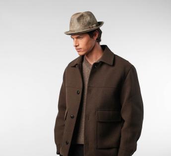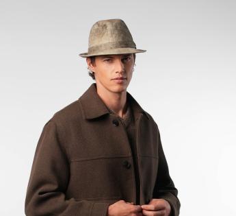 Assertive style, unique allure. This Player Hat in velvety leather is made for urban men who want to make an impression. Its patinated look, short and adjustable brim, and subtly crafted texture create a strong piece, both refined and striking.