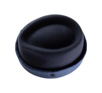Docker Beanie in molded felt and raw denim. Structured lines. A relaxed yet assertive style. This headpiece reimagines the Docker Beanie spirit with a contemporary silhouette. The felt brings structure and softness. The timeless raw denim creates a striking contrast of materials, easy to pair with any look.