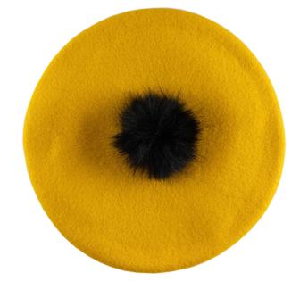 Crafted from pure merino wool, this French Beret is adorned with a playful pompom, adding a touch of whimsy to a classic reimagined. The deep black faux fur pompom contrasts with the vibrant color of the felt.
