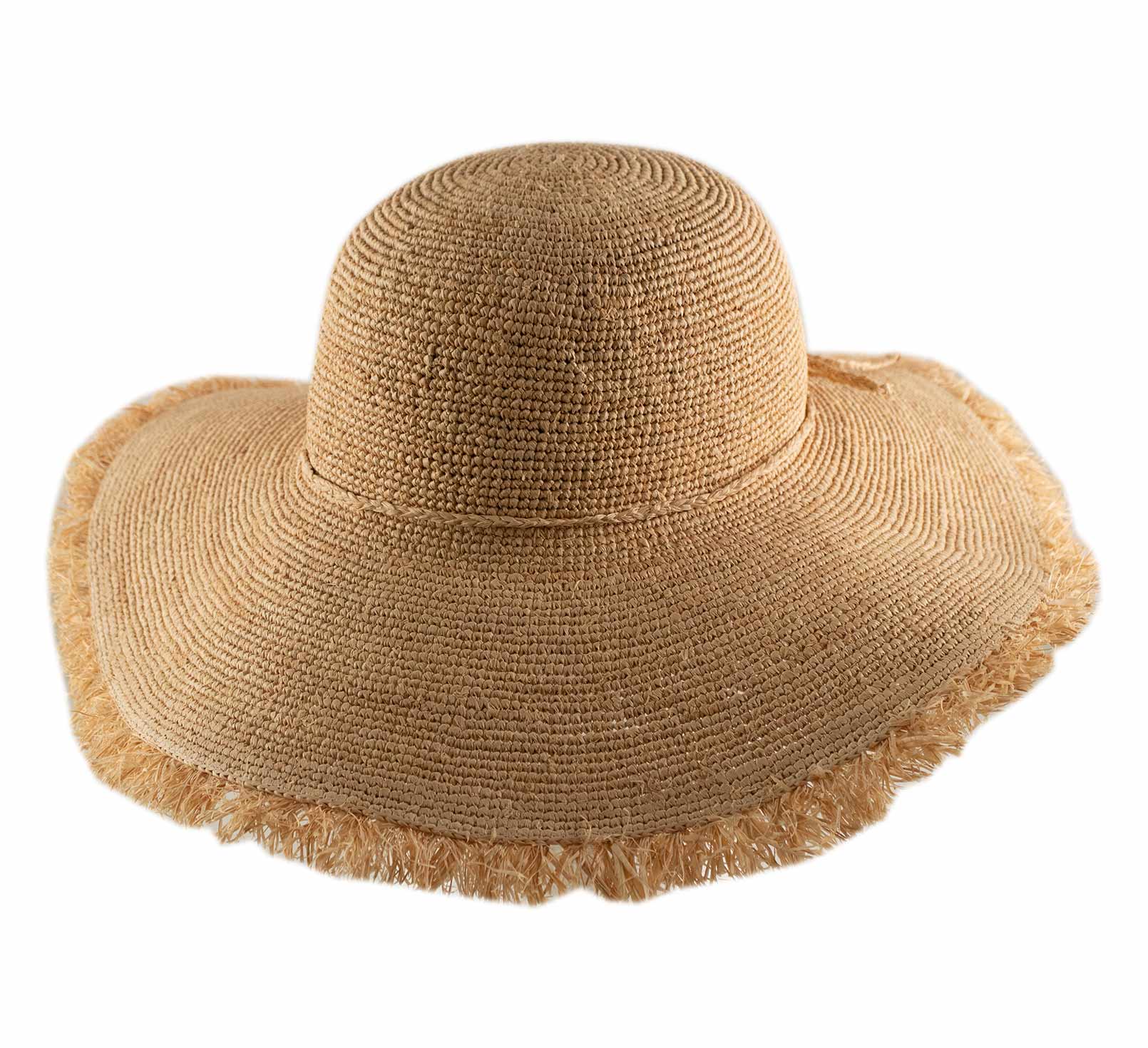 This hat embodies the spirit of beautiful summer days. It evokes gentle light, spontaneous getaways, and those effortlessly elegant feminine silhouettes. Its flexible line, frayed brim, and bohemian chic spirit lend it a light, natural, and utterly charming presence.