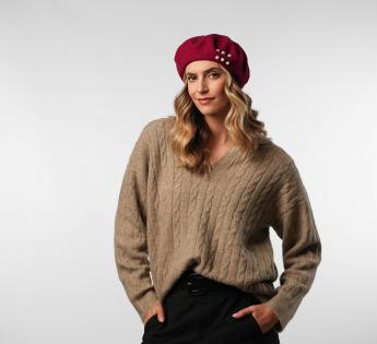 Its simple line is enhanced by a trimming of pearl beads, adding a touch of discreet and feminine chic. Between retro spirit and contemporary sophistication, this beret adapts to all occasions: a seemingly simple accessory, yet decidedly elegant.