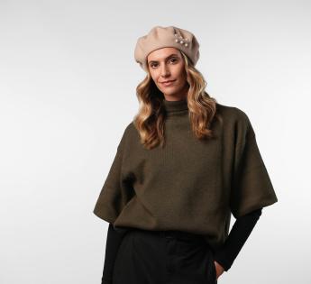 Its simple line is enhanced by a trimming of pearl beads, adding a touch of discreet and feminine chic. Between retro spirit and contemporary sophistication, this beret adapts to all occasions: a seemingly simple accessory, yet decidedly elegant.