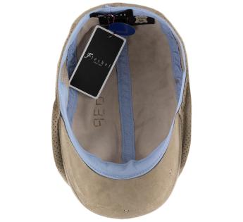Ivy cap covered with a thin and supple leather that has been worked to make a peach skin effect. The side yoke is made with a microperforated leather to allow a much better breathability, which is reinforced by the absence of lining. This is therefore a true summer cap, original and perfectly adapted to the season.