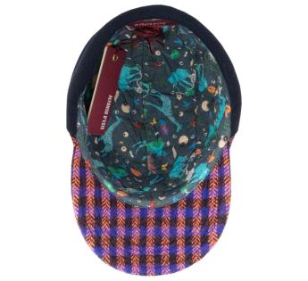 Warm baseball cap designed with a wide and supple visor to make the headgear foldable. It is entirely made in pure and dense wool customized by alternating colored lines with herringbone patterns inside them. The model is equipped with an earflap to therefore extended its protection.