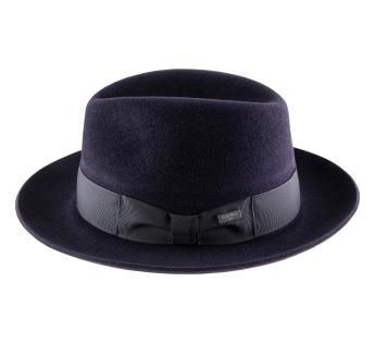 Handcrafted in Italy, this felt hat embodies the pinnacle of refined elegance. Its brushed felt reveals a velvety finish that catches the light and highlights its delicate features. Adorned with a wide grosgrain ribbon tied in a classic knot, the hat is accented with a Guerra 1855 signature plaque, a testament to unparalleled artisanal craftsmanship.