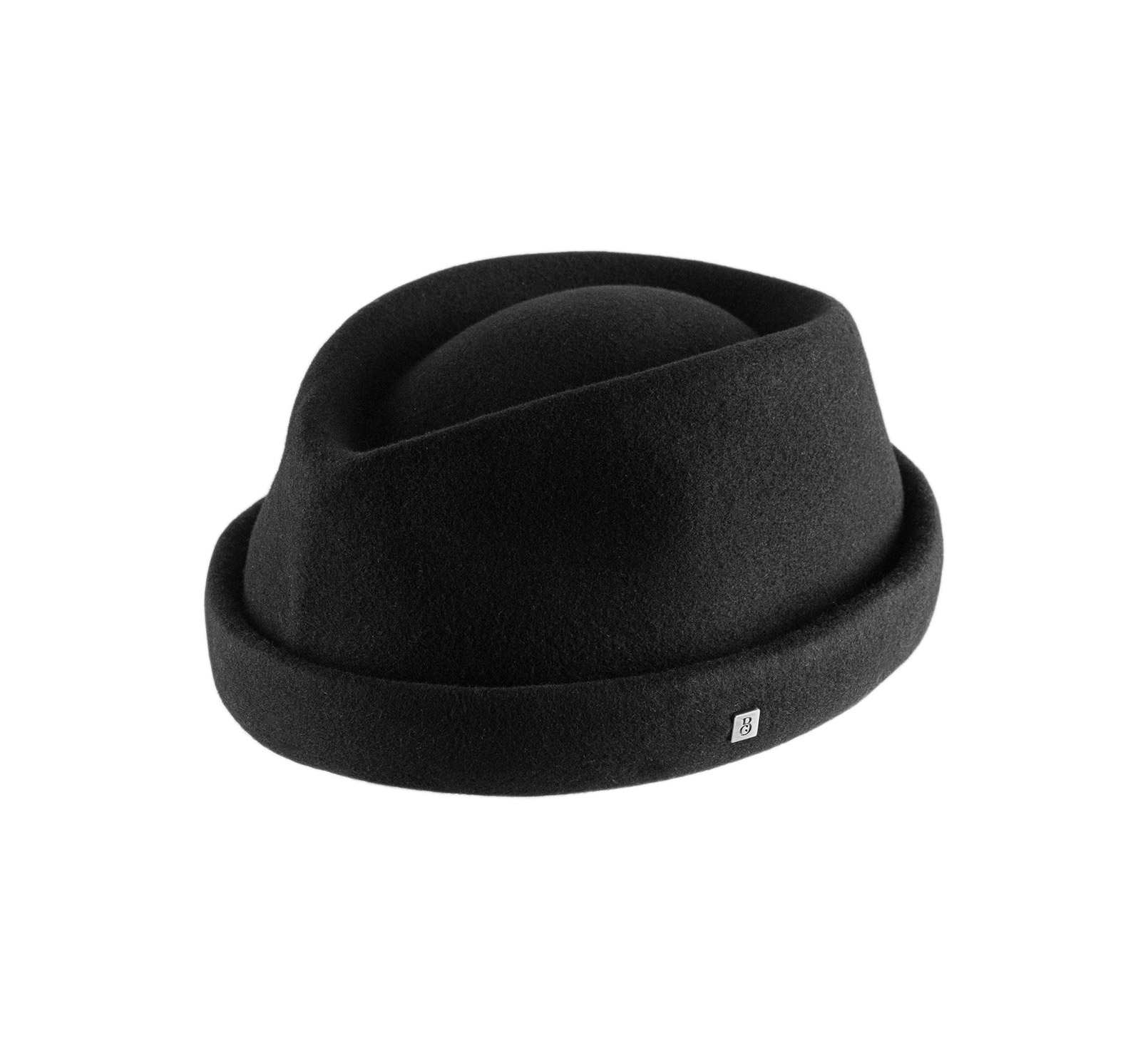 Made from wool felt, this model offers a stable and comfortable fit, with a marked crown and a wide, clean cuff. An artisanal piece, designed to accompany a contemporary silhouette with character and precision.