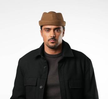 Made from wool felt, this model offers a stable and comfortable fit, with a marked crown and a wide, clean cuff. An artisanal piece, designed to accompany a contemporary silhouette with character and precision.