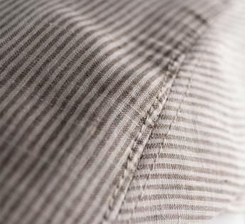 Entirely crushable, it slips into a pocket without losing its shape. Its sleek silhouette and structured brim create a refined look. The fine pinstripe pattern and luminous hue lend a natural distinction. Equipped with UPF50+ UV protection, it shields you from the sun while remaining light and breathable.