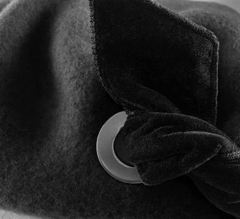 This reimagined beret plays with contrasts with boldness and refinement. Its Basque shape, with a medium cut, is twisted by a duo of strong details: a hand-braided velvet bow and two metallic eyelets that modernize the silhouette. A subtle balance between tradition and design, crafted for a confidently feminine look.
