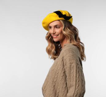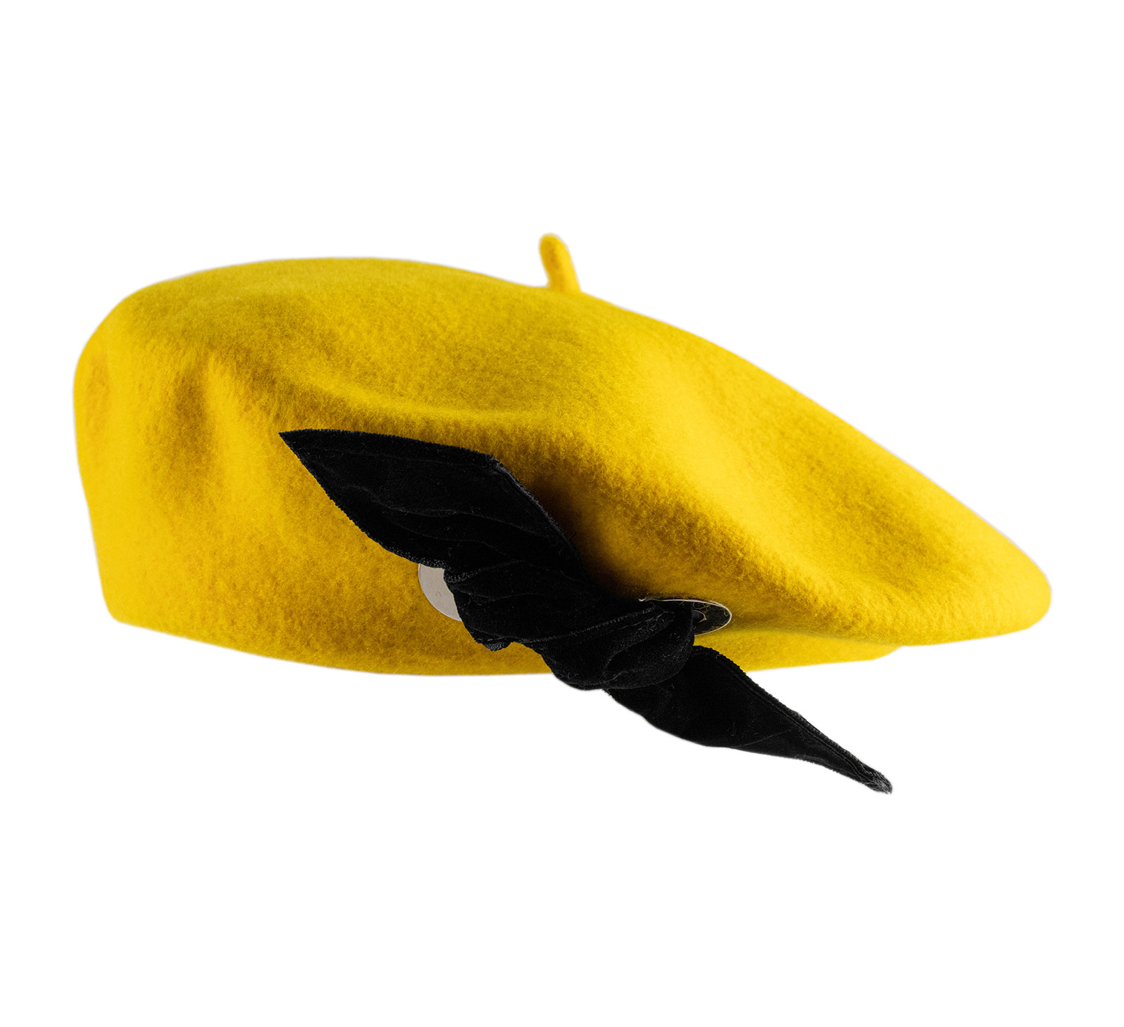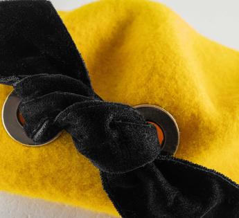 This reimagined beret plays with contrasts with boldness and refinement. Its Basque shape, with a medium cut, is twisted by a duo of strong details: a hand-braided velvet bow and two metallic eyelets that modernize the silhouette. A subtle balance between tradition and design, crafted for a confidently feminine look.