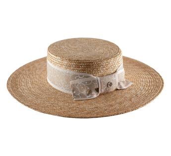 Perfect for complementing a summer or formal outfit, this women's Boater Hat beautifully enhances the figure, especially when paired with a backless dress. A feminine and meticulously crafted piece, designed to combine elegance and finesse.