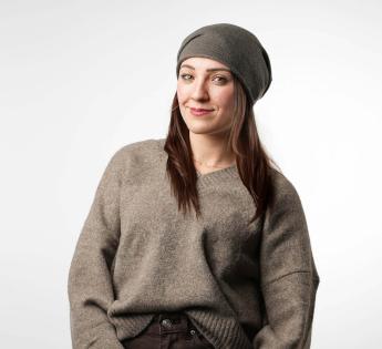 The beauty and softness of cashmere is especially evident when it makes up the fabric of this type of versatile and adjustable oversized beanie. Very practical, it will cover your head and even your ears. In a solid color and very lightweight, it is also breathable to release excess heat. By Kopka.