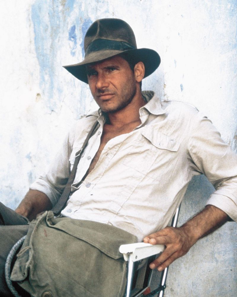Fun fact: To give Indiana Jones's hat its lived-in look, costume designer Deborah Nadoolman Landis and Harrison Ford spent an evening distressing several models designed for the film. Sanded with sandpaper and metal brushes, rubbed, rolled in dirt and dust, these hats were even deliberately crushed. Harrison Ford went so far as to sit on them to give them the flexibility and patina that are now integral to their legend.