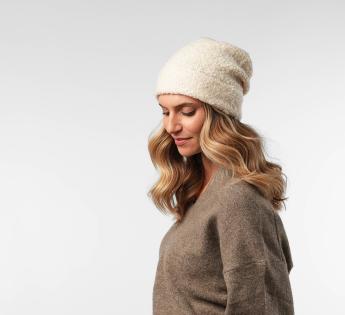 Warmth and enveloping softness for this beanie with boucle texture and a modern look. Its plush material with a fluffy touch offers excellent insulation while remaining breathable, ideal for cold days. Its flexible cut with integrated cuff comfortably adapts to all shapes without compressing.