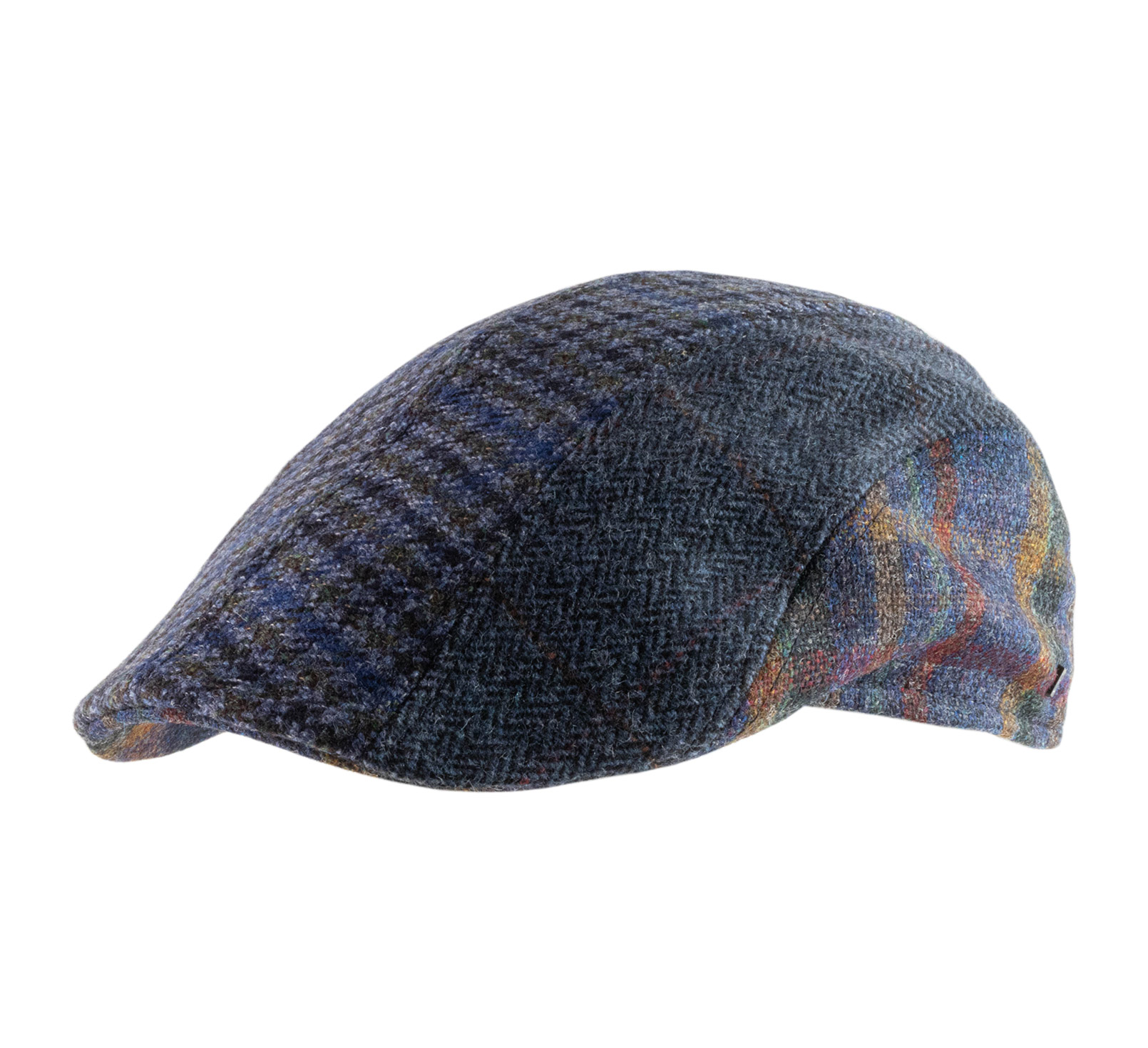 Duckbill cap through its naturally beautiful fitting cut. Its curve visor is lengthening a crown made in a patchwork style with a naturally water-repellent wool. Its fabric reveals houndstooth, herringbone and square patterns to make a unique and contemporary look.