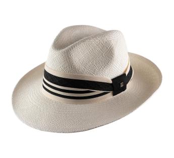 Artisanal elegance meets sporty flair in this exceptional Panama hat, crafted in our Lyon workshop. Its textured mesh band, inspired by polo, is enhanced with a two-tone satin ring for a refined touch. A lightweight and breathable hat, perfect for a chic yet relaxed look.