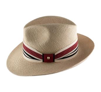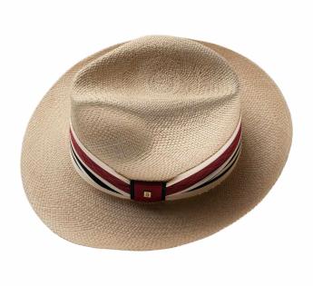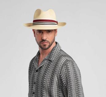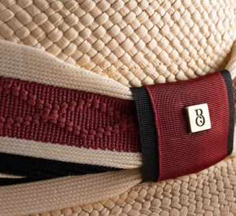 Artisanal elegance meets sporty flair in this exceptional Panama hat, crafted in our Lyon workshop. Its textured mesh band, inspired by polo, is enhanced with a two-tone satin ring for a refined touch. A lightweight and breathable hat, perfect for a chic yet relaxed look.