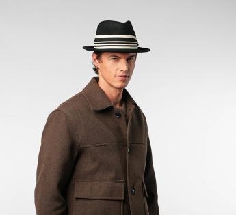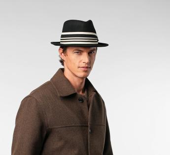 The perfect balance between sobriety and boldness, this Fedora hat with a mid-length brim captivates with its discreet shape, easy to adopt daily. Crafted from light yet warm felt, it is enhanced by an ultra-graphic braid combining textured knit, smooth satin, and contrasting finishes.