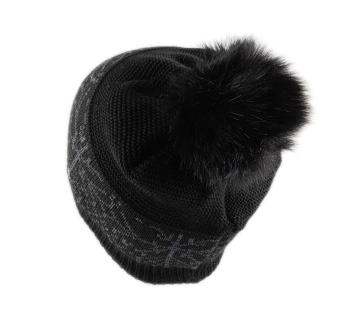Nordic look and cocooning spirit for this beanie knitted in France from a soft blend of wool, acrylic, and lurex. Its graphic pattern adds depth, while the slightly shimmering thread subtly illuminates the whole. The faux fur pompom adds an elegant and warm touch, perfect for the cold season.