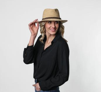 Crocheted raffia straw hat in a flexible and fine version, with a medium-length, versatile brim. Its openwork weaving allows for better breathability during use. The model will therefore be light, yet perfectly durable thanks to its high-quality couture.