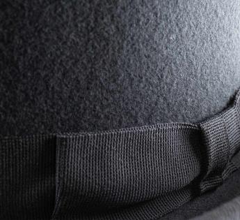 This top hat in hardened wool felt embodies elegance in its purest form. Its deliberately accentuated high crown creates a majestic vertical line, a signature of grand ceremonial silhouettes. The rigid felt, meticulously crafted, ensures impeccable hold and a refined finish.