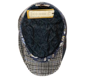 Duckbill cap designed through the patchwork method by getting together multiple pieces from different fabrics. The whole then creates a juxtaposition of motifs with a lining that features abstract vintage patterns. Its style is sober, almost rustic, yet still multipurpose to accompany our elegant and casual outfit in the right balance of classic/modern.