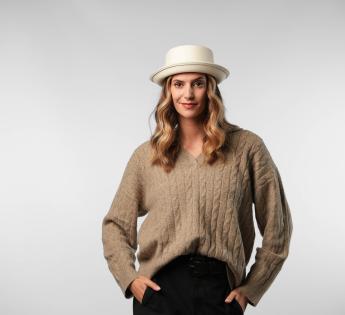 Minimalist, graphic, and decidedly trendy: between a very retro small bell and a contemporary felt Bucket hat, this hat revisits the codes with a structured and refined silhouette. Crafted from felted wool, it is naturally water resistant, ideal for facing the seasons with style.