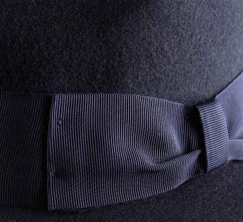 With its short brim and slightly raised crown, this Trilby Hat enjoys being worn tilted to the side or inclined towards the back, to break the line. The grosgrain braid, finished with a flat knot, highlights the dressed-up spirit of the model.