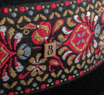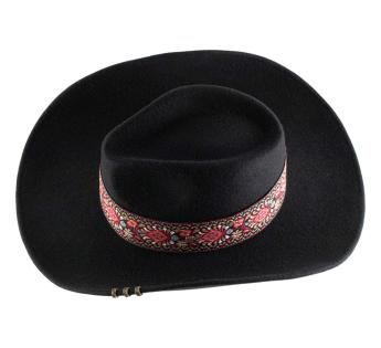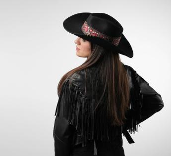 Its embroidered band, with rich floral patterns, adds a touch of exoticism and refinement. Three metallic jewels affixed to the brim add an original and assertive note. A quality hat with a nomadic spirit, perfect for those seeking an accessory with a strong personality.