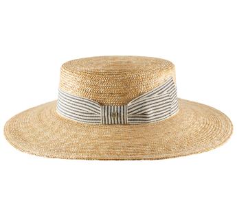 Unisex and minimalist hat made of a very thin and traditional straw. A simple design that makes all its charm beside a striped cotton braid reminiscent of the beach of the Planches of Deauville. A choice of sober and natural colors that can go with a multitud of summer outfits, from the most sophisticated to the bathing suit.