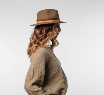 The ensemble is highlighted by a double contrasting braid combining raw suede leather and satin ribbon. This play of textures, between roughness and softness, accentuates the singular allure of this hat with a strong character.