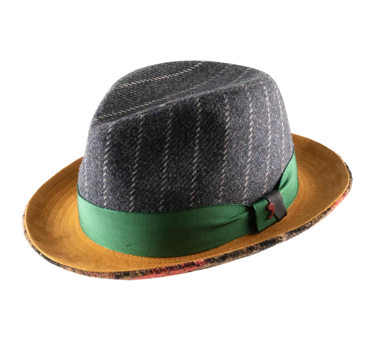 Of a uniquely splendid style, the player could easily personalize your allure. Its little brims are perfect for enhancing the traits of a thin face. If yours is oval or heart-shaped, then it will also be gorgeous on a relaxed look or for terminating an elegant outfit. Always complemented by a beautiful braid of by some colourful feathers, the Player installs you at a star position to let your fatal charm shine.
