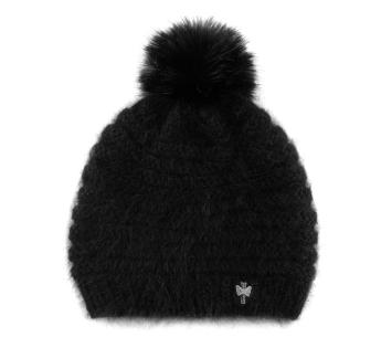 Softness and winter elegance for this beanie knitted in France from a light and mellow angora blend. Its fluffy knit offers a silky touch and comforting warmth, perfect for cold days. The synthetic fur pompom adds a feminine and refined touch.
