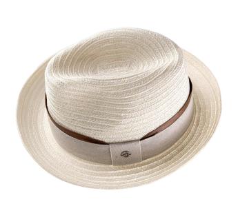 This Player Hat in abaca captivates with its lightweight, breathable, flexible, and durable material—perfect for the season. Its understated trimming combines linen with a chocolate-toned, aged leather-look braid, bringing just the right touch of warmth to this refined and elegant ensemble.
