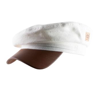 Elegant navy cap through its iconic shape. Its crown is extended by a leather visor. The latter establishes at the same time a striking contrast.