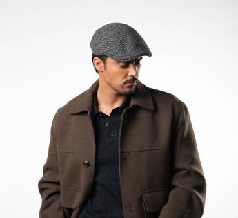 Streamlined silhouette, noble material, assertive character. This Stetson flat cap captivates with its sleek style and meticulous craftsmanship. Made from authentic harris tweed wool, woven in Scotland, it offers natural insulation and effective thermal regulation. Ideal for facing the cooler seasons while remaining lightweight and breathable. Its structured harris tweed weave creates a subtle honeycomb pattern, blending depth and elegance in subtly nuanced dark tones.