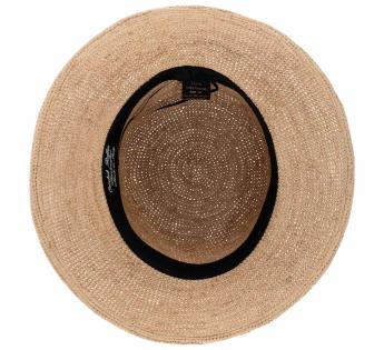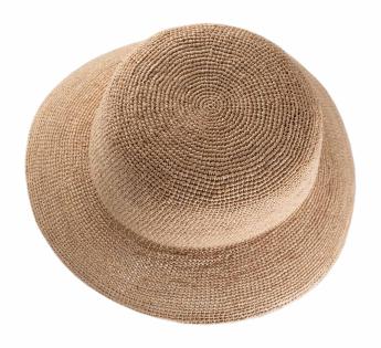This raffia hat embodies sun-drenched elegance. Its crocheted texture exudes artisanal charm and exceptional suppleness—it rolls and folds without losing its shape, making it the impeccable companion for coastal hikes or leisurely city strolls.