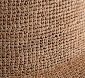 100% Raffia Straw, a natural fiber prized for its lightness and authentic charm.