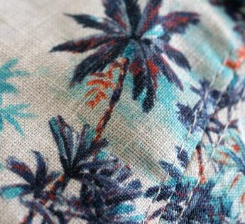 The palm tree pattern brings a true visual freshness, instantly evoking summer, holidays, and bright days. There is an airy, carefree spirit to this piece, reflected in its lightweight fabric and breathable lining.