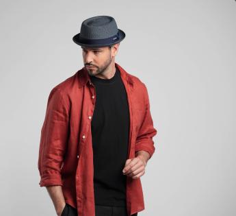 Pork Pie designed with a traditional short brim around a beautiful crown. Its name is inspired by its shape which looks like the American pastry of the same name. It is adorned with a braid through the same tones.