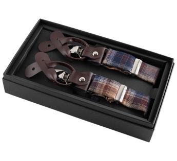 The tartan pattern plays on deep and warm tones for a look that is both bold and sophisticated. The textured fabric offers comfort and hold, while the leather finishes add a mastered vintage touch. Delivered in a simple box, these braces make a choice gift or a daily style asset. Wear with a shirt, vest, or high-waisted trousers for a perfectly balanced look.