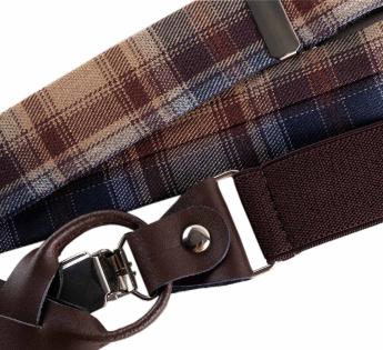 Elegant and functional, these braces with a Scottish pattern revisit retro style codes with a contemporary touch. Their Y-cut, with a plain back elastic, ensures excellent support and great freedom of movement. Suitable for all adult body types from 1.50m to 1.80m, they adjust easily and attach according to your preferences thanks to the mixed system: metal clips or leather tabs.