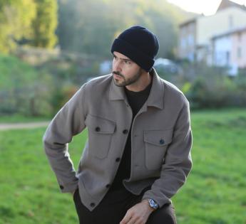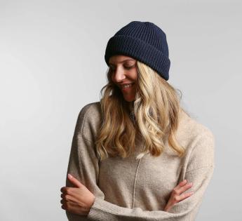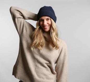 Hat with cuff, to be worn short or long. Its cuff is fully foldable. The design is made of thick, comfortable stitches.