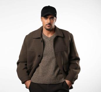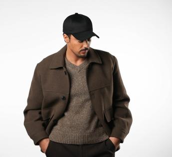 Its felted, soft, and cozy appearance gently catches the light, revealing subtle reflections. This elegant texture also enhances the naturally water-repellent properties of cashmere, for a serene wear every day.