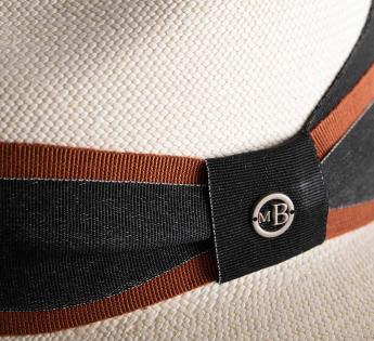 This Panama Hat Montecristi stands out with its grosgrain ribbon, refined in timeless shades, whose layered construction brings a subtle depth. The asymmetrical detail extending at the back infuses a modern dynamism into this classic silhouette, signed with a brushed silver badge.