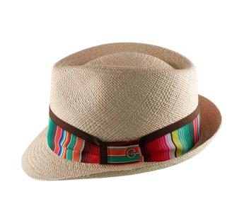 The Trilby Hat Panama that turns every head. Its finely woven straw, crafted in Ecuador, offers lightness, flexibility, and impeccable structure. Shaped in Italy, it boasts a precise and elegant silhouette. The braid unveils a profusion of colors—sometimes pastel, sometimes vibrant and intense. A play of vertical lines, enlivened by a metallic Label. A sparkling model, perfect for elevating a summer look.