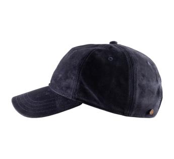 Baseball cap designed with kidskin that's been turned into velvet. The process ensures pleasant comfort and feel. The model is of an American look.