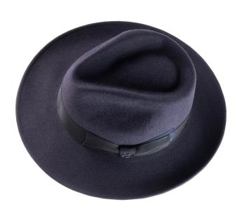 Traveller hat of a 100% silky grosgrain, enhanced by a grosgrain touch that is matching the color of the felt. The hat is thus made through a mix of textures with noble materials and of great quality. The matching logo "B Couture" of the brand is embroidered on its braid as an authentication.