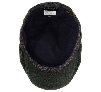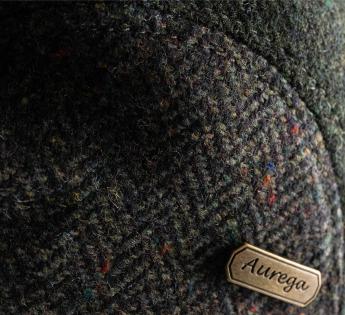 Elegant and timeless, this flat cap captivates with its herringbone pattern accented by fine touches of color. This subtle weave, combined with solid wool panels, creates a sober yet intricate patchwork. Its streamlined shape ensures a snug fit on the head, offering a dynamic and refined silhouette. The metallic 'Aurega' label discreetly signs the ensemble.